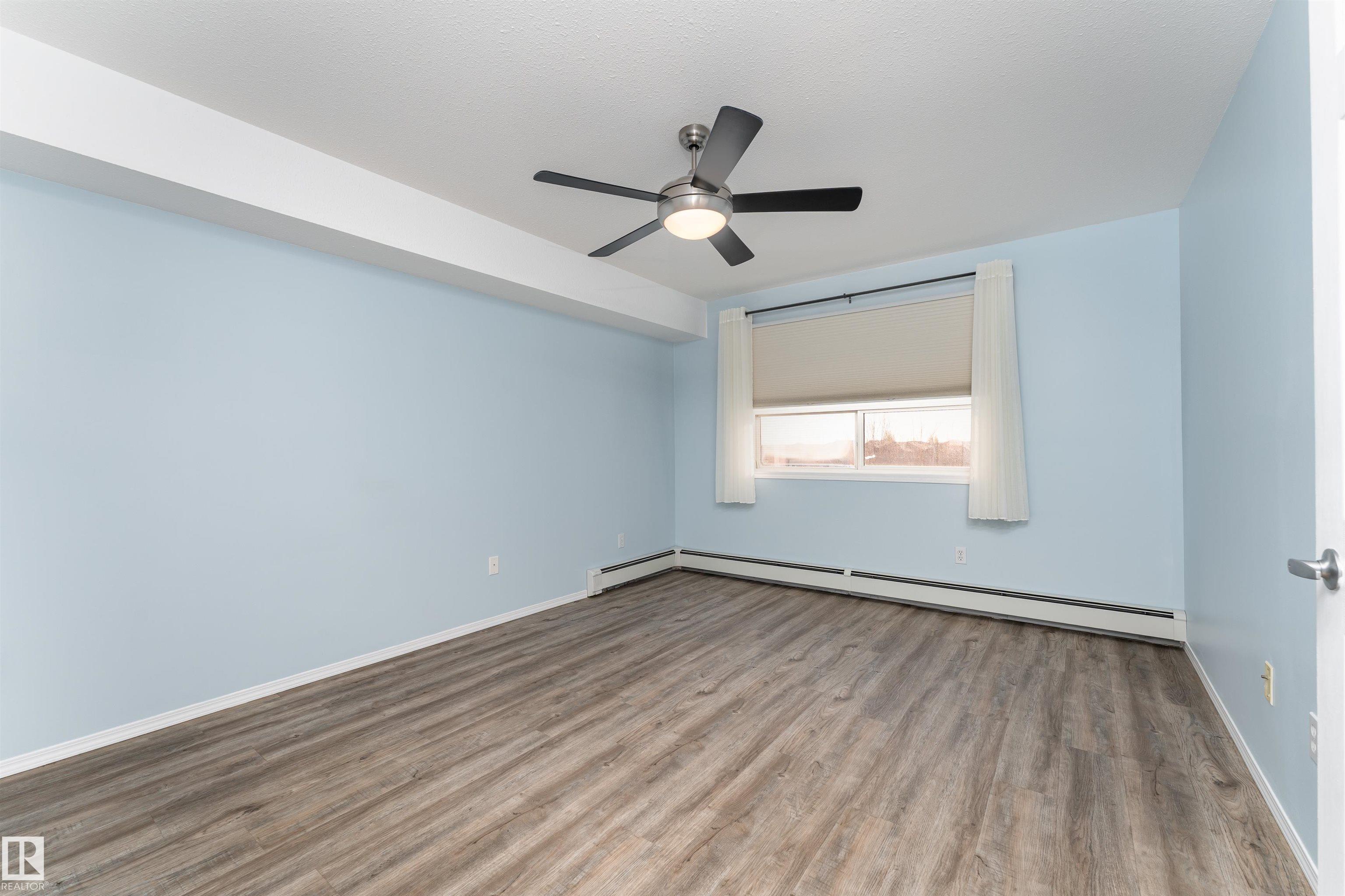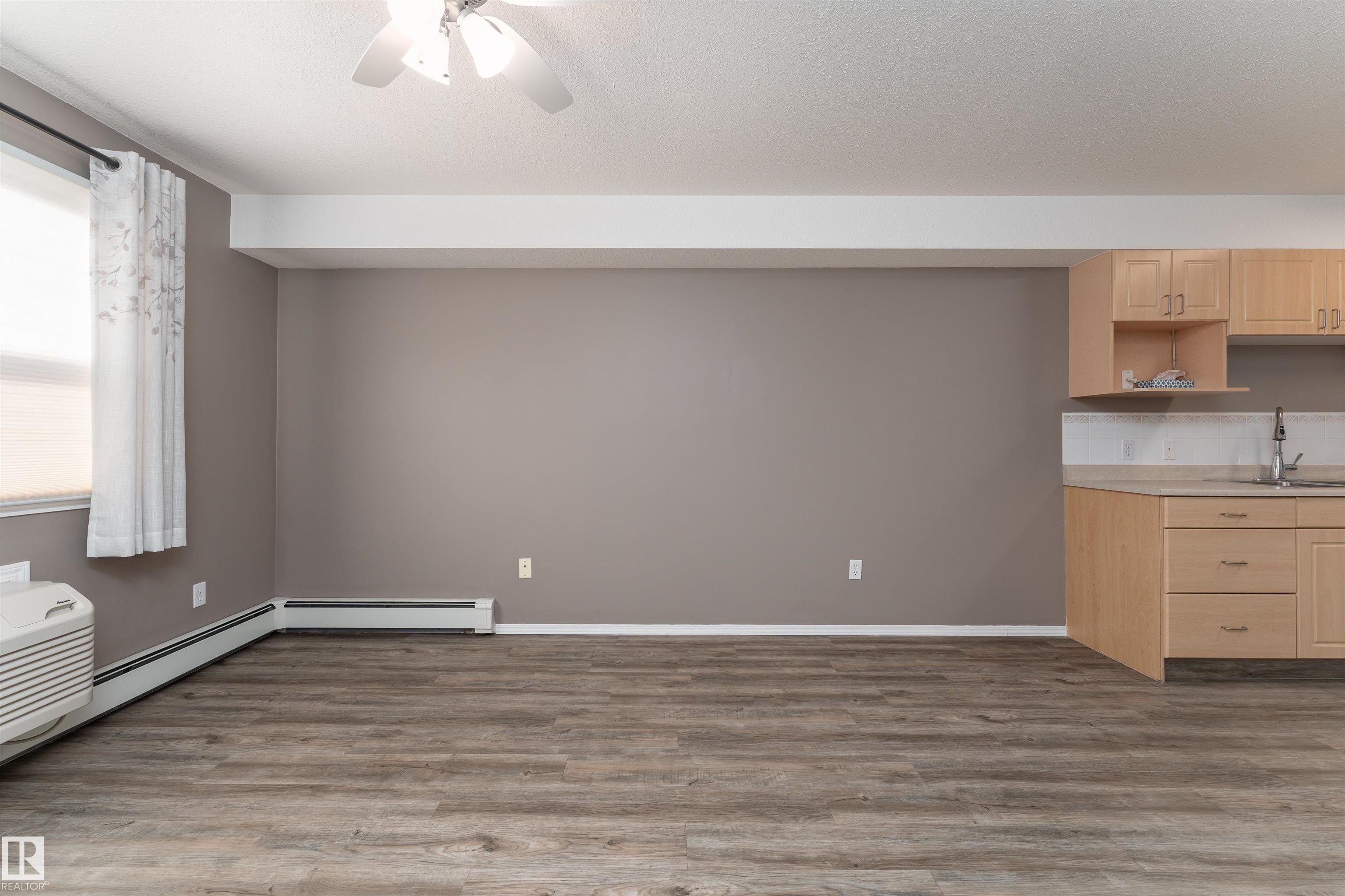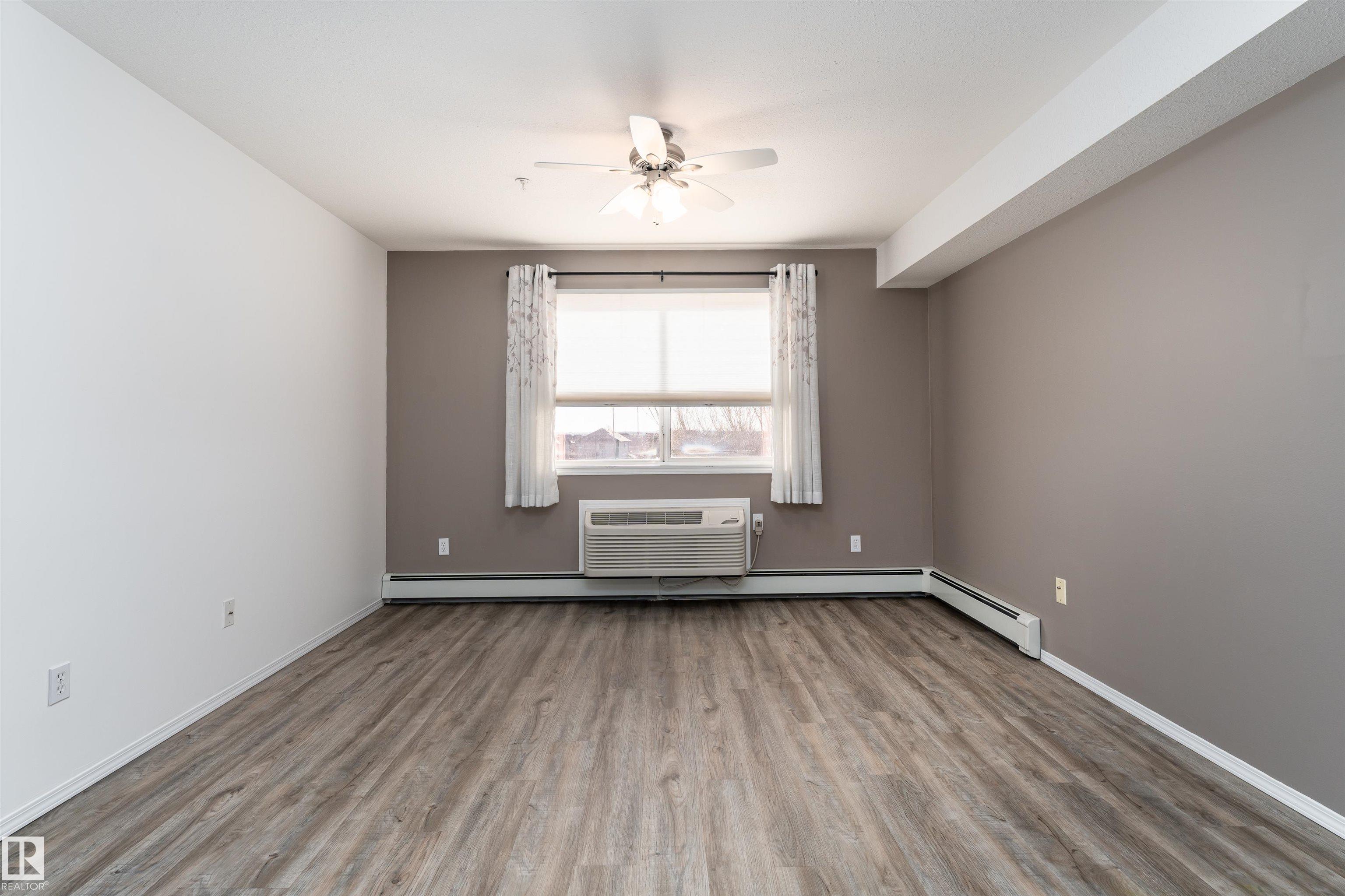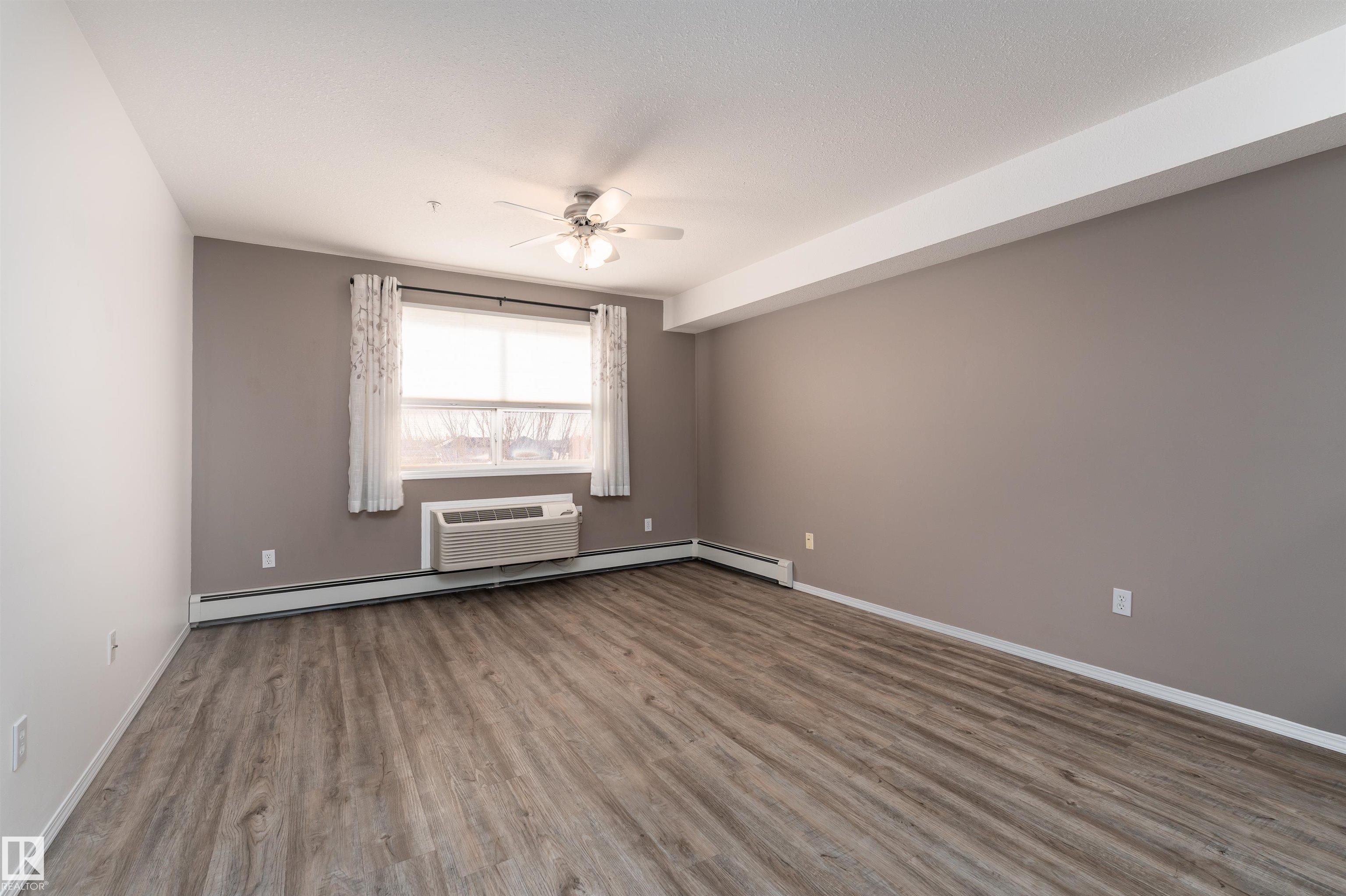 Located on the third floor of The Gardens (Southfort) condo complex, this air-conditioned one-bedroom plus den unit offers 771 sq/ft of comfortable living space. The southeast-facing layout features a bright den, a cozy kitchen overlooking the living room, a 3-piece bathroom with a convenient sit-down shower, a storage room, and ample closet space throughout. Easy-care luxury vinyl plank flooring adds warmth and style to the home and this home is wheel chair accessible. Residents of The Gardens enjoy access...