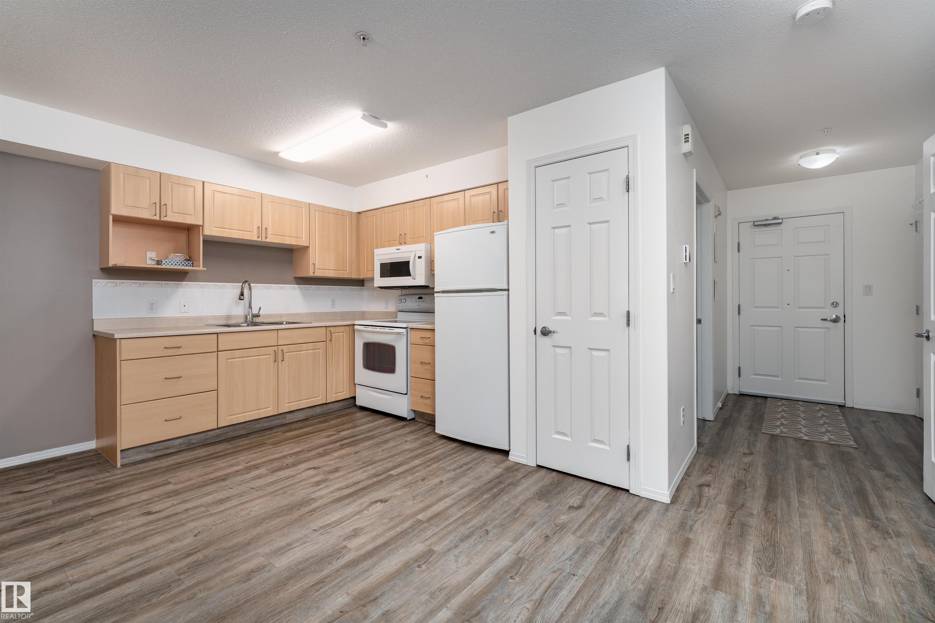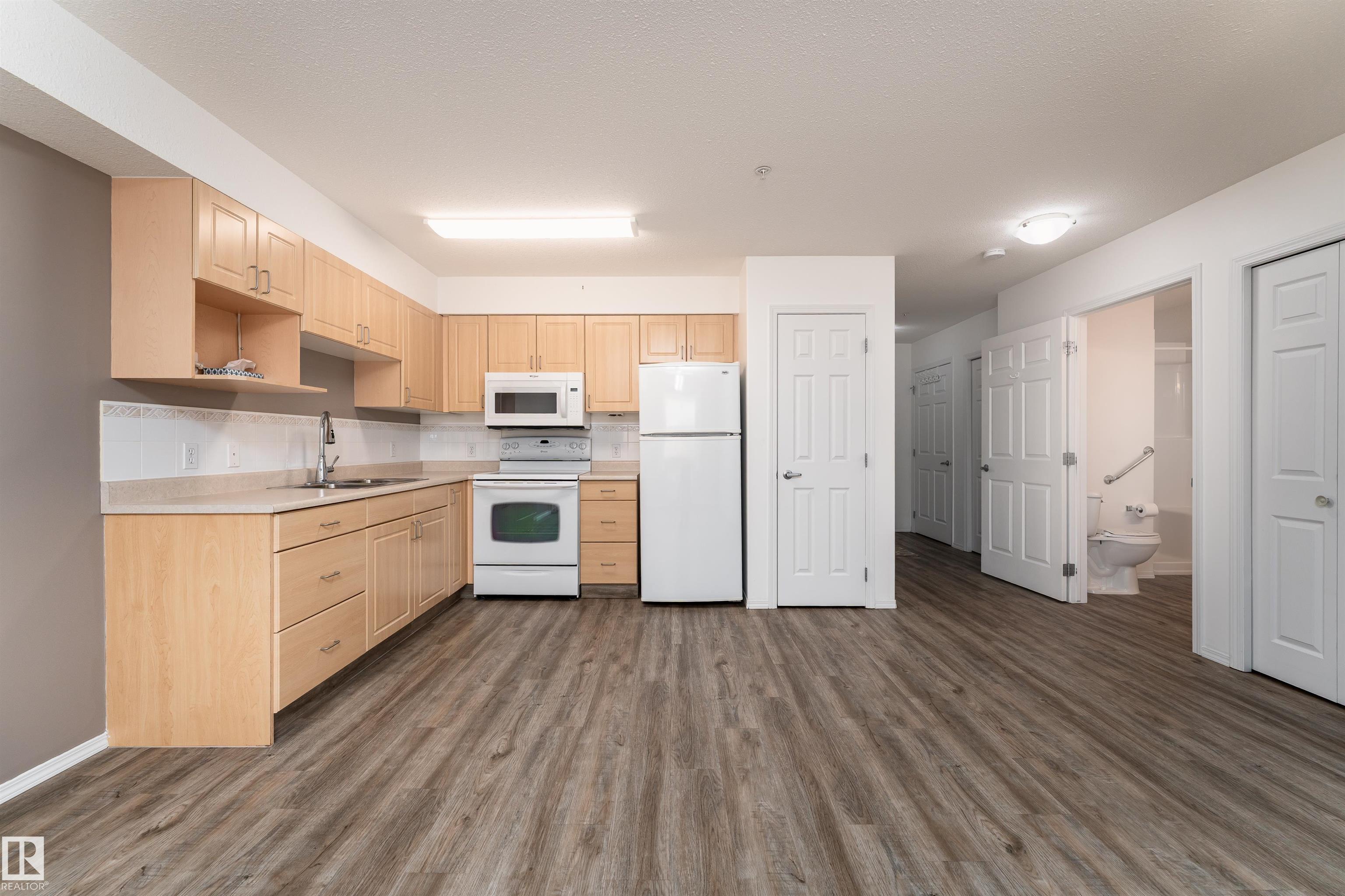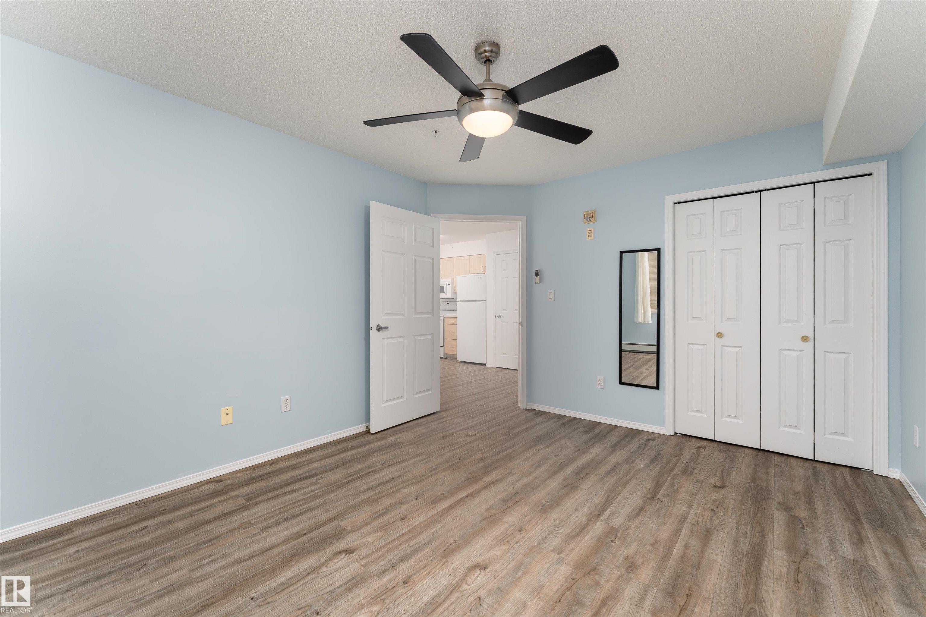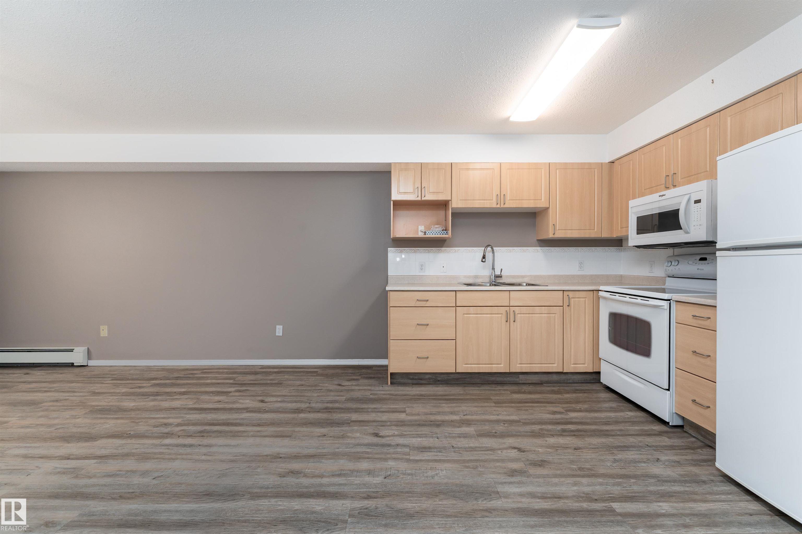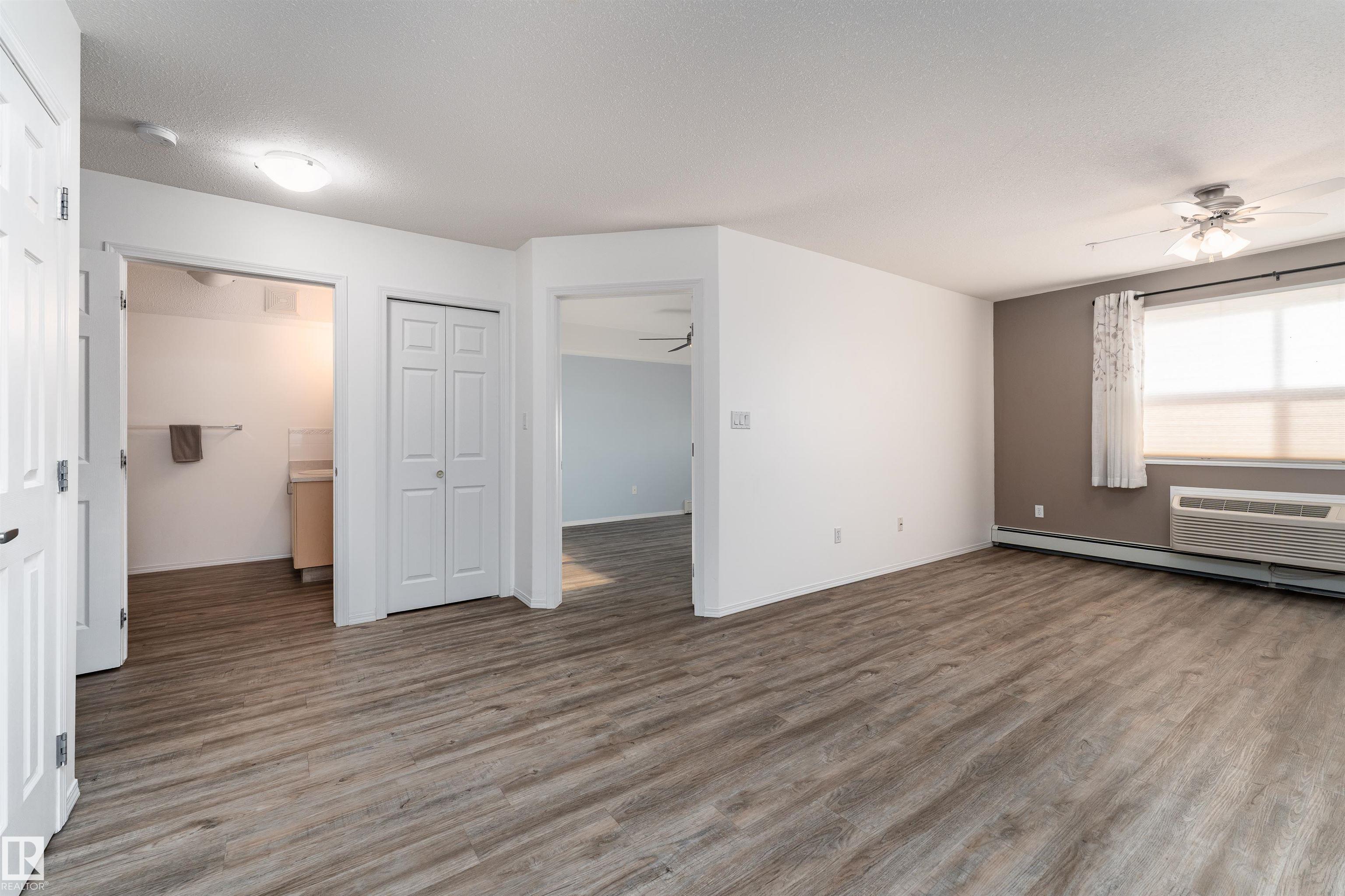 Located on the third floor of The Gardens (Southfort) condo complex, this air-conditioned one-bedroom plus den unit offers 771 sq/ft of comfortable living space. The southeast-facing layout features a bright den, a cozy kitchen overlooking the living room, a 3-piece bathroom with a convenient sit-down shower, a storage room, and ample closet space throughout. Easy-care luxury vinyl plank flooring adds warmth and style to the home and this home is wheel chair accessible. Residents of The Gardens enjoy access...