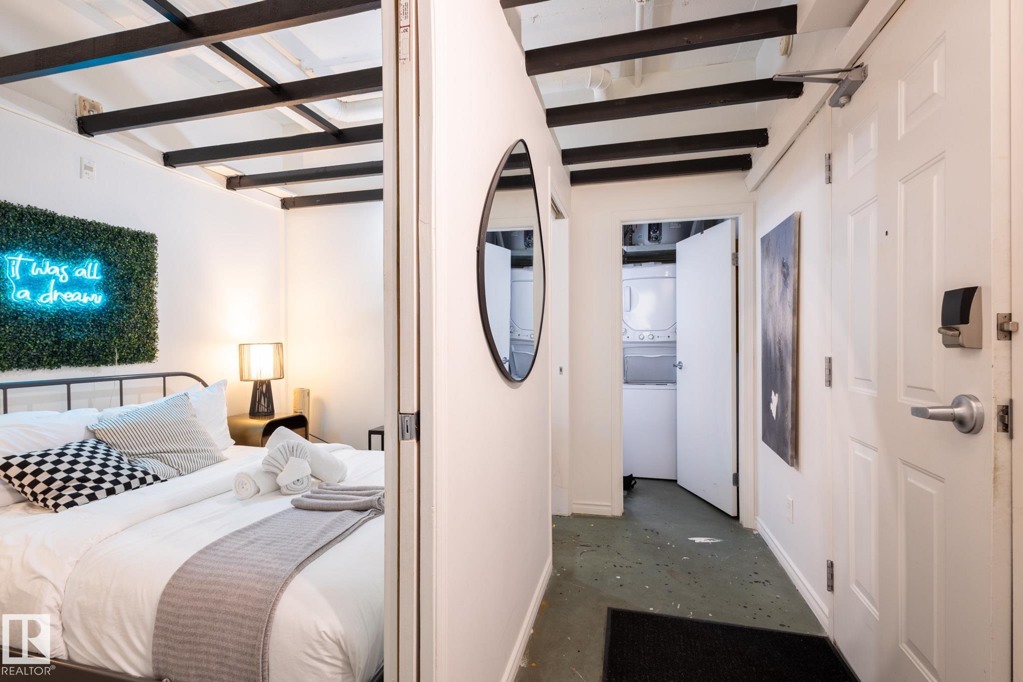 Experience downtown Edmonton living in this unique 1 bedroom loft style condo at Cambridge Lofts. Designed with exposed concrete flooring and ceilings, this unit boasts a functional open layout, with a modern urban feel. The kitchen has been tastefully updated with efficient storage, flowing seamlessly into a bright living space ideal for everyday living or entertaining. The bedroom is well sized and complemented by a full four piece bathroom and the convenience of in suite laundry. Located directly on Jasp...
