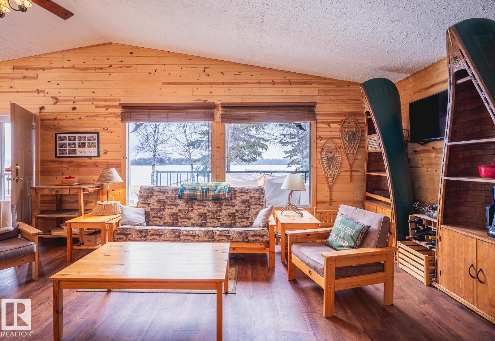 Year Round Lake House located at the picturesque Summer Village of Nakamun Park. This meticulously maintained property offers the perfect blend of comfort and convenience for year round living or weekend escapes. This home is complete with 2 bedrooms, Living Room with fireplace, Kitchen featuring dining area and pantry, as well as 3 piece. bathroom. Enjoy the outdoors from the spacious front and/or back deck with awning, firepit, beautiful lake front grounds and serene lake atmosphere. Heated garage with ...