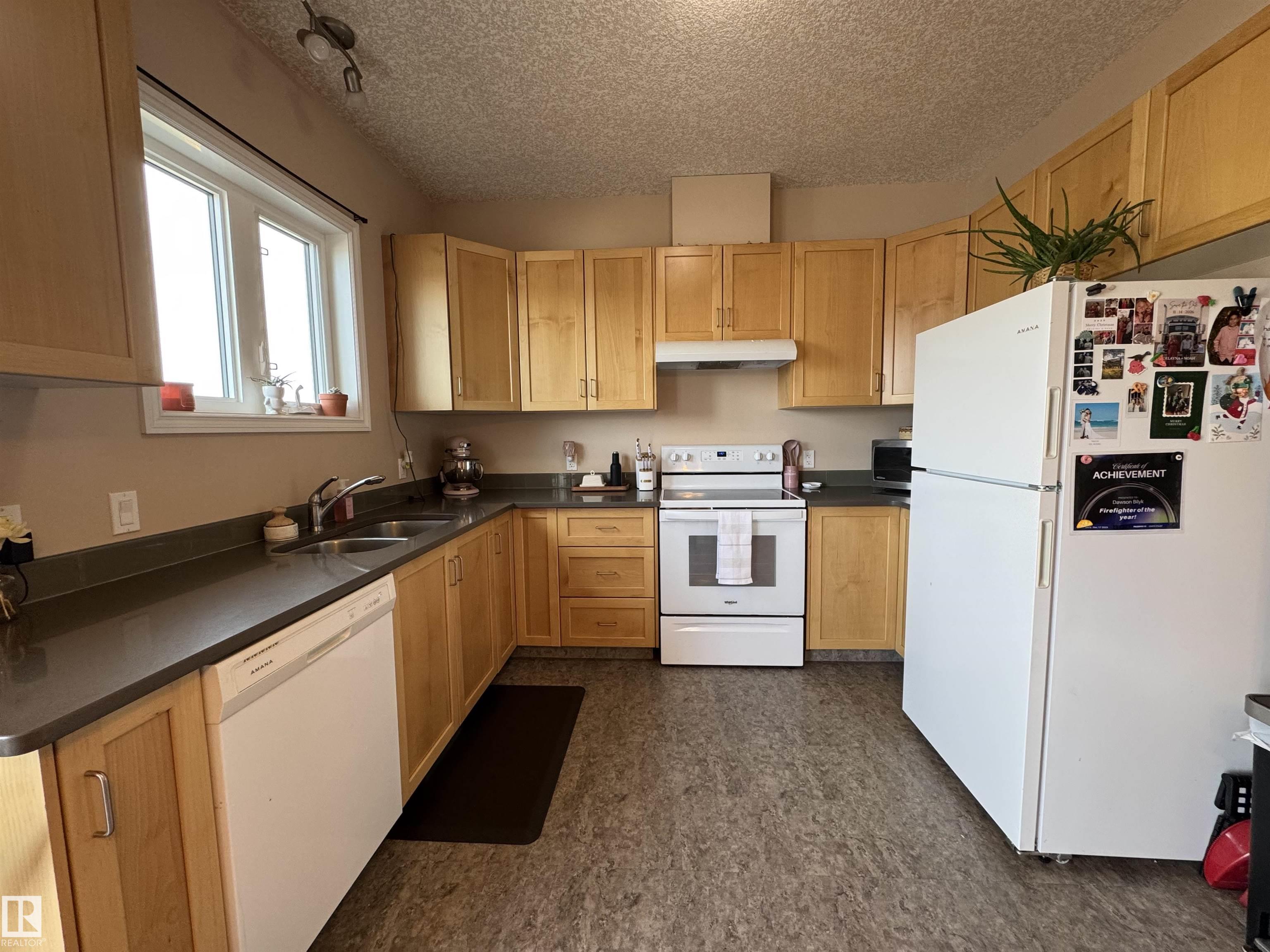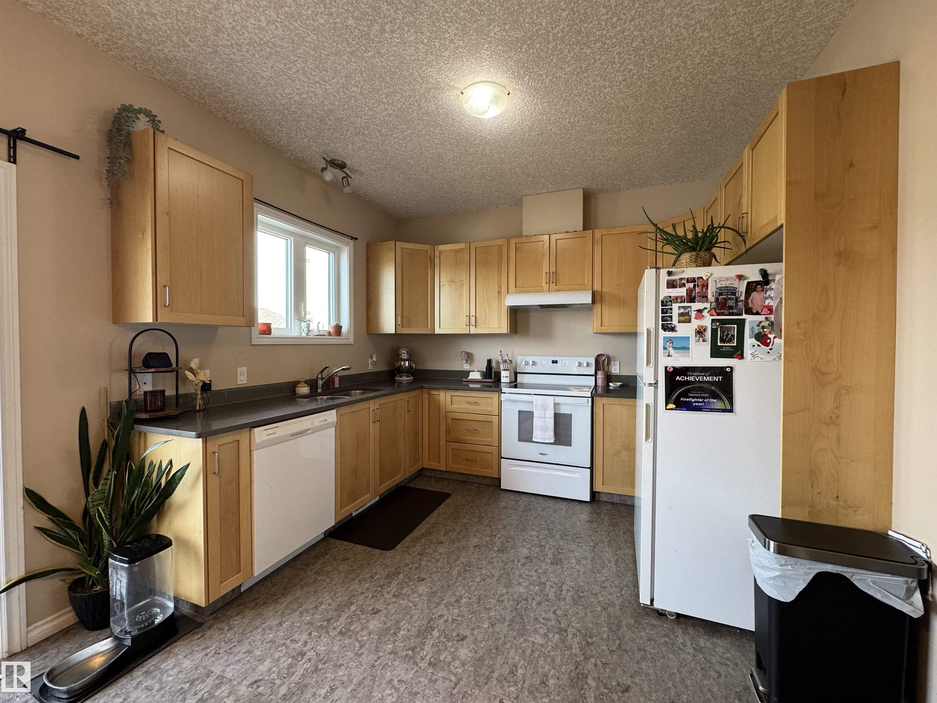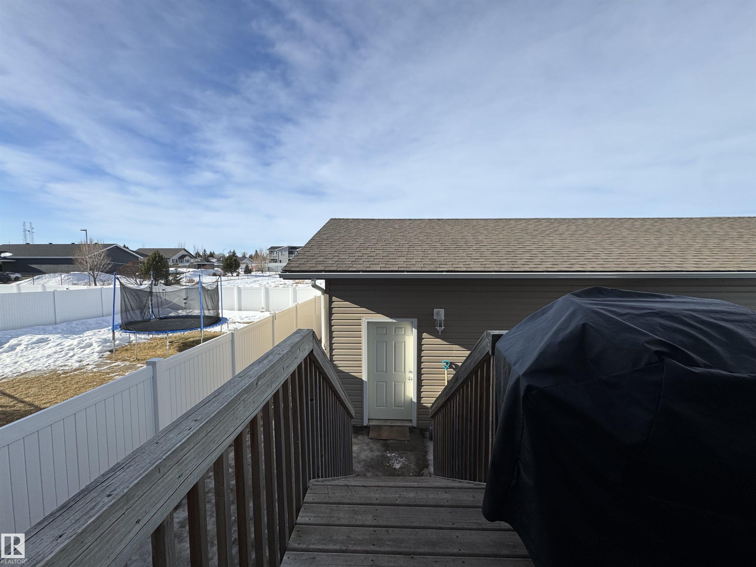 This half duplex built in 2015 is sure to please and is located in a family friendly area close to walking trails, a playground, ice rink, football fields and a school. As one enters the home you are greeted into a bright spacious living room which leads to the dining room and kitchen boasting quartz countertops, shaker cabinets, white appliances and vinyl flooring. The patio doors off of the dining area leads you onto the finished deck and down to the single detached garage. A 2 pc bathroom finished off th...
